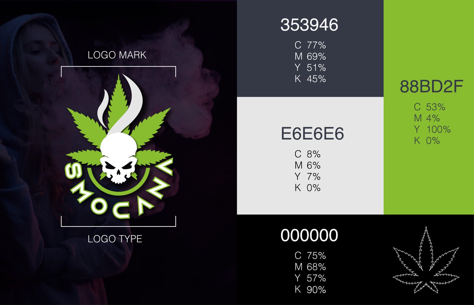 This logo concept creatively blends a weed leaf, skull, and smoke to symbolize the brand’s core identity: powerful, bold, and cannabis-infused. The skull signifies intensity and attitude, while the smoke rising through the leaf captures the essence of vaping. The name “SMOUVANA” curves dynamically beneath the design, enhancing the visual flow. This logo perfectly reflects a brand that manufactures vapes and hemp-based vape liquids, combining edge and modern cannabis culture in a clean, memorable graphic representation.